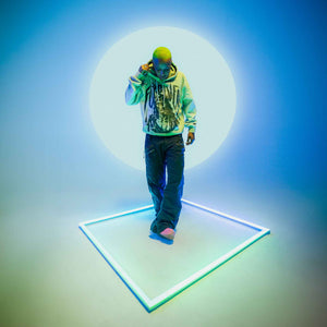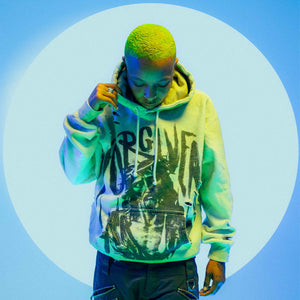 *each hoodie dye and hole patterns are unique to each garment no two are the same. this mock up is not the finalized product it is a representation of the actual garment